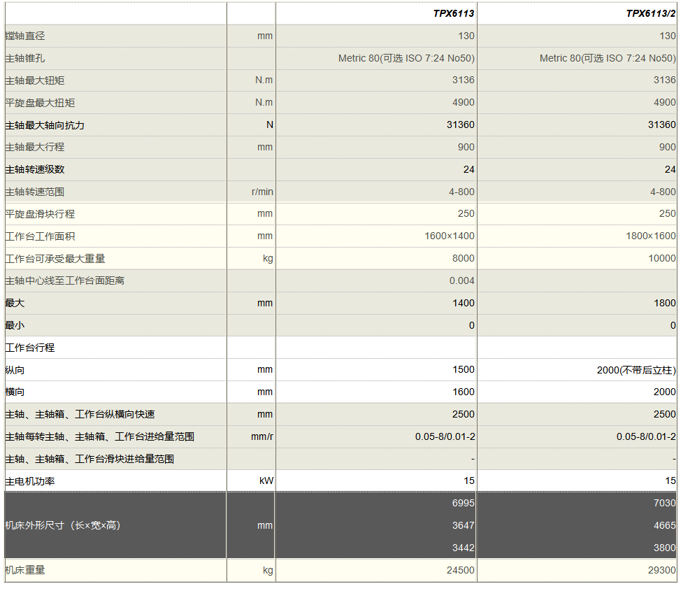 TPX6113 型卧式铣镗床适用于较大型箱体件镗、铣削、车螺纹等多工序加工
