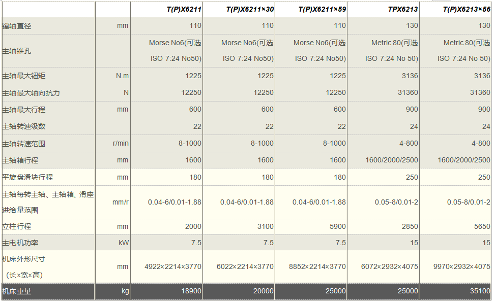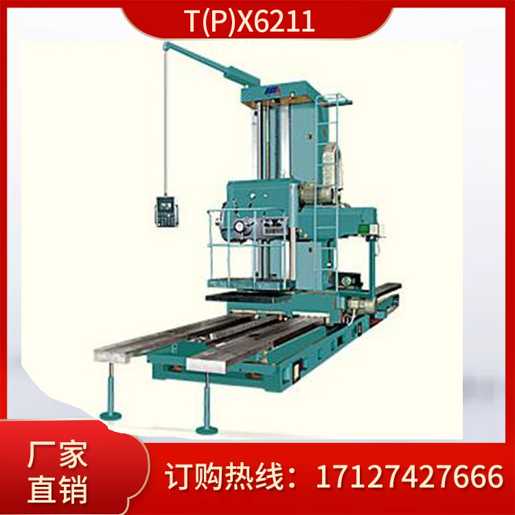 T(P)X6211型落地铣镗床是卧式铣镗床的变型产品, 主轴直径110mm,是为大型零件加工提供的理想设备。 可进行钻孔、扩孔、镗孔、铰孔、锪平面、车削螺纹及铣削大平面等工序。